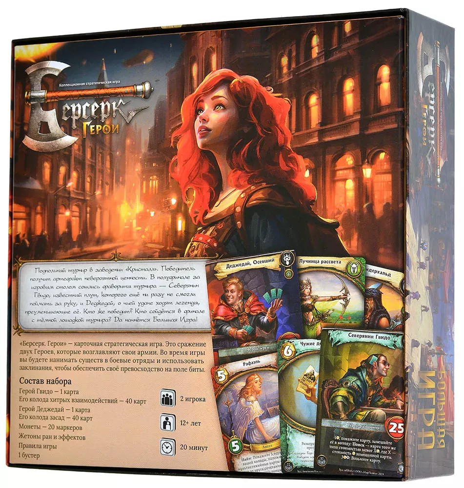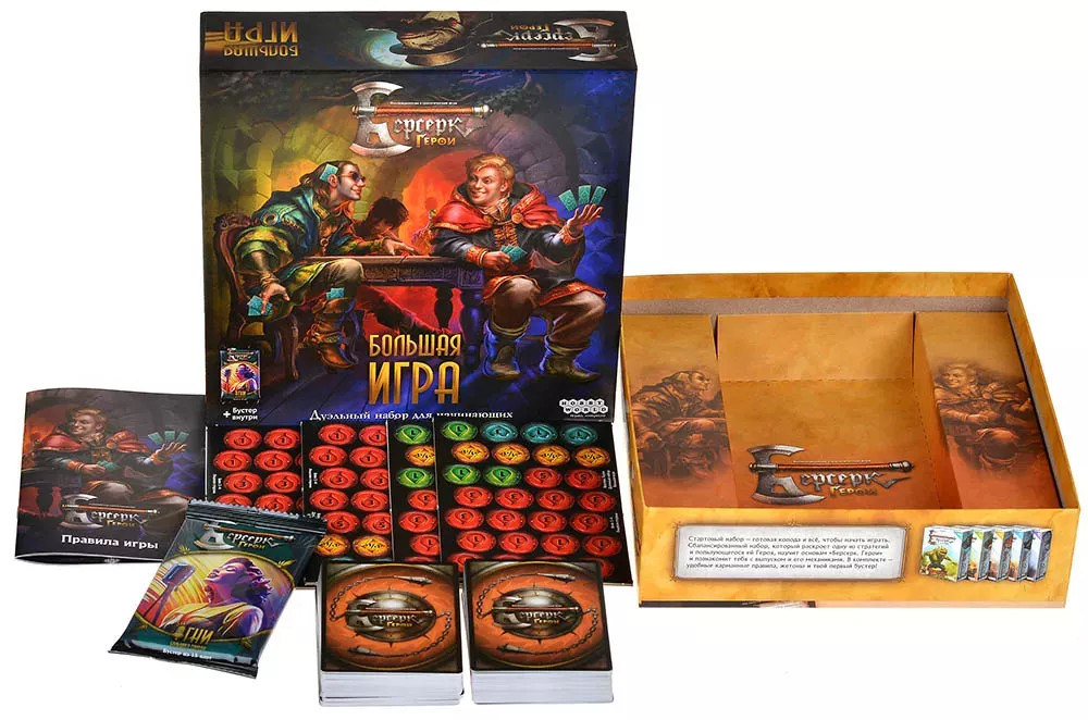 "Берсерк. Герои" – карточная стратегическая игра, в которой двум игрокам предстоит устроить нешуточную дуэль за звание победителя. Участники нанимают различных существ в боевые отряды и используют особые умения своих бойцов, чтобы снизить здоровье противника до нуля. Данный набор идеально подойдёт тем, кто только знакомится с обширной вселенной "Берсерка": он познакомит вас с правилами боя, уникальными персонажами и даст возможность проявить свои навыки на поле битвы!