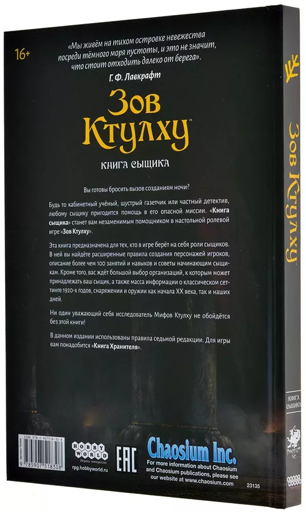 Эта настольная ролевая игра позволит вам погрузиться в мир настоящих лавкрафтовских кошмаров. Когда-то истинными владыками Земли были существа столь древние, что они видели восход и закат новых цивилизаций. Однако уже долгие годы все, что о них известно, кроется в старых манускриптах и безумных речах проповедников. Но однажды боги проснутся и обратят свой взор на человечество. И гнев их будет страшен, и последствия будут печальны. Ужас вырвется из глубин - и никто не сможет это остановить.