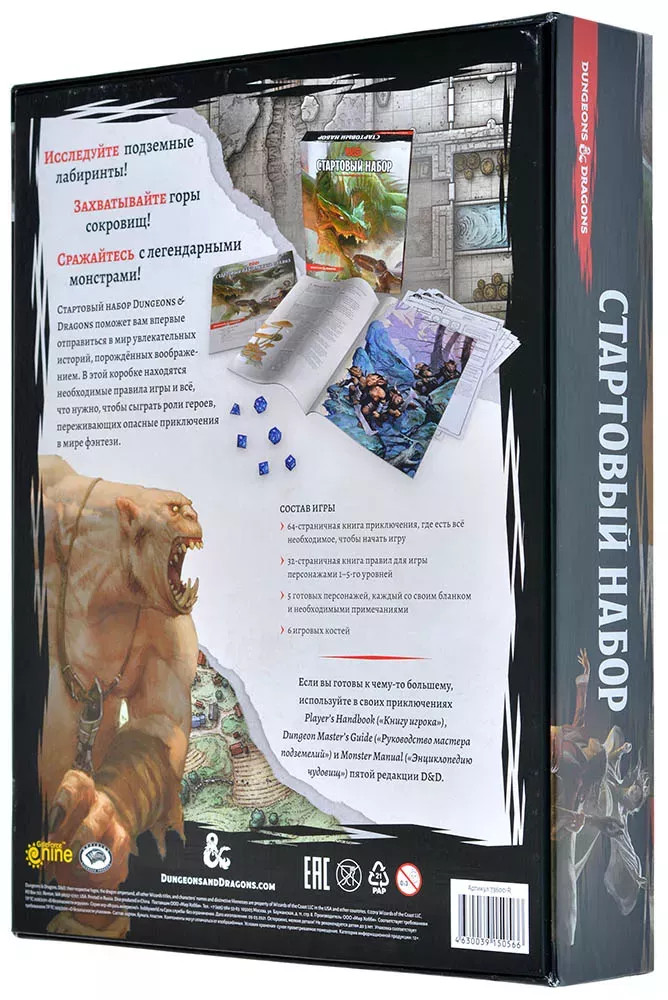 - 32-страничная книга правил для игры персонажами 1–5-го уровней